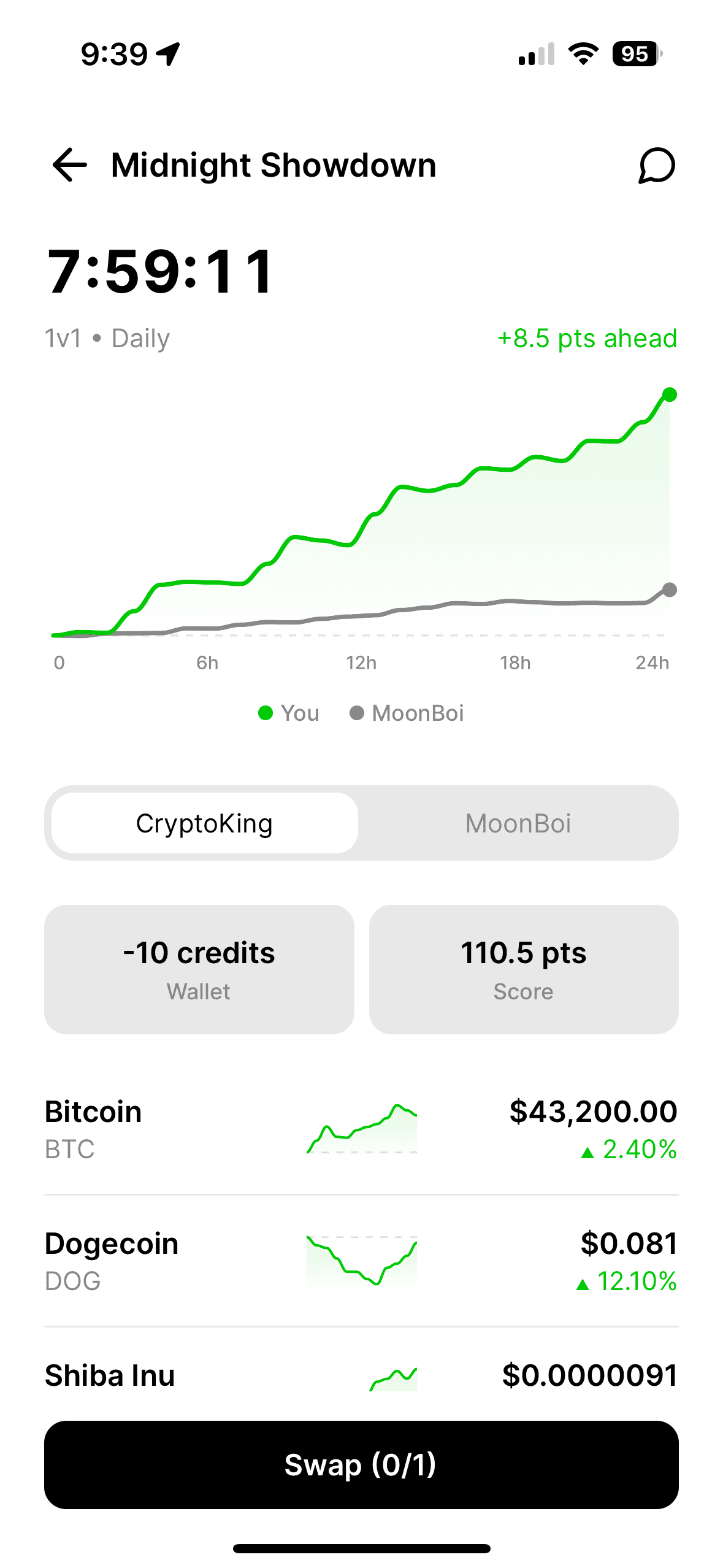 Scored by real-time price movement weighted by position size and boosts. Different coins, different risk. Adapt your strategy as the contest plays out.