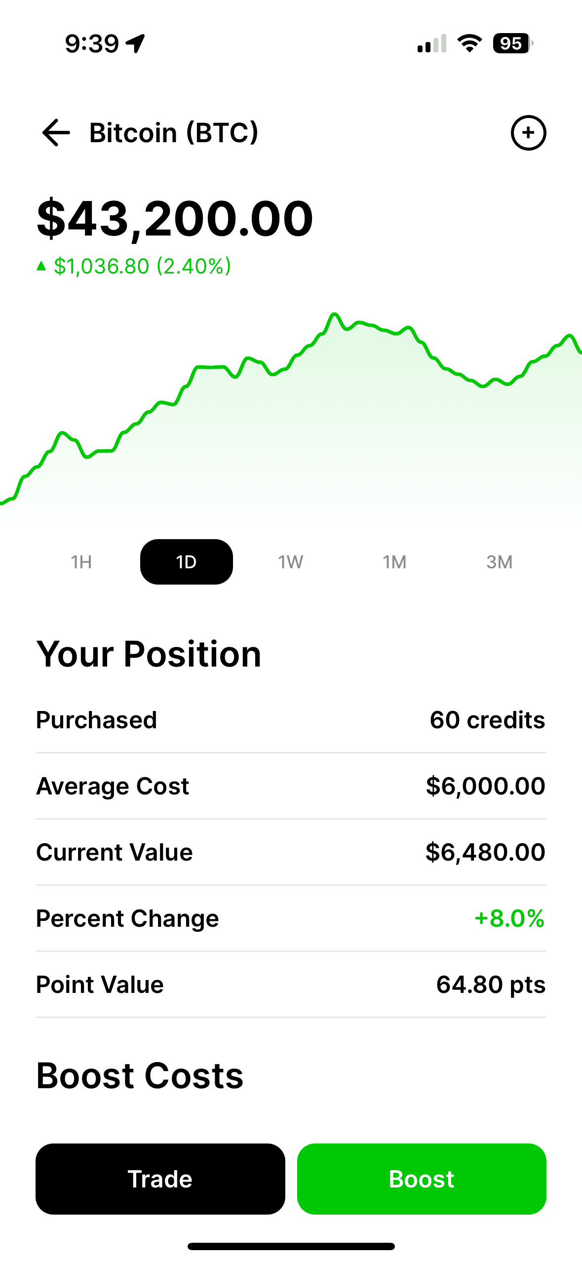 Players start with 100 credits. Buy and sell coins using real-time market data. Apply boost multipliers to amplify gains at the cost of credits.